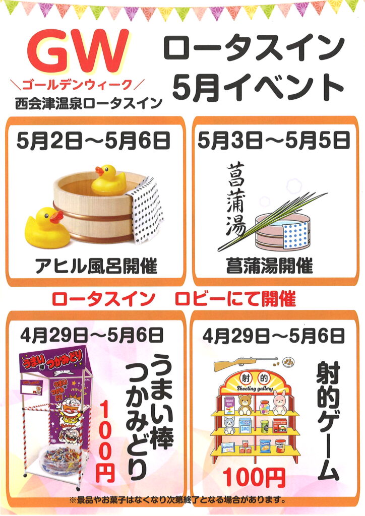 2026.04.24 GWお楽しみイベント いよいよ待ちに待った楽しいGW。 ロータスインでは、お子様も大喜びの楽しいイベントを開催致します。 ロータスインで楽しいGWをお過ごし下さい!! 皆様のお越しをお待ちしております。